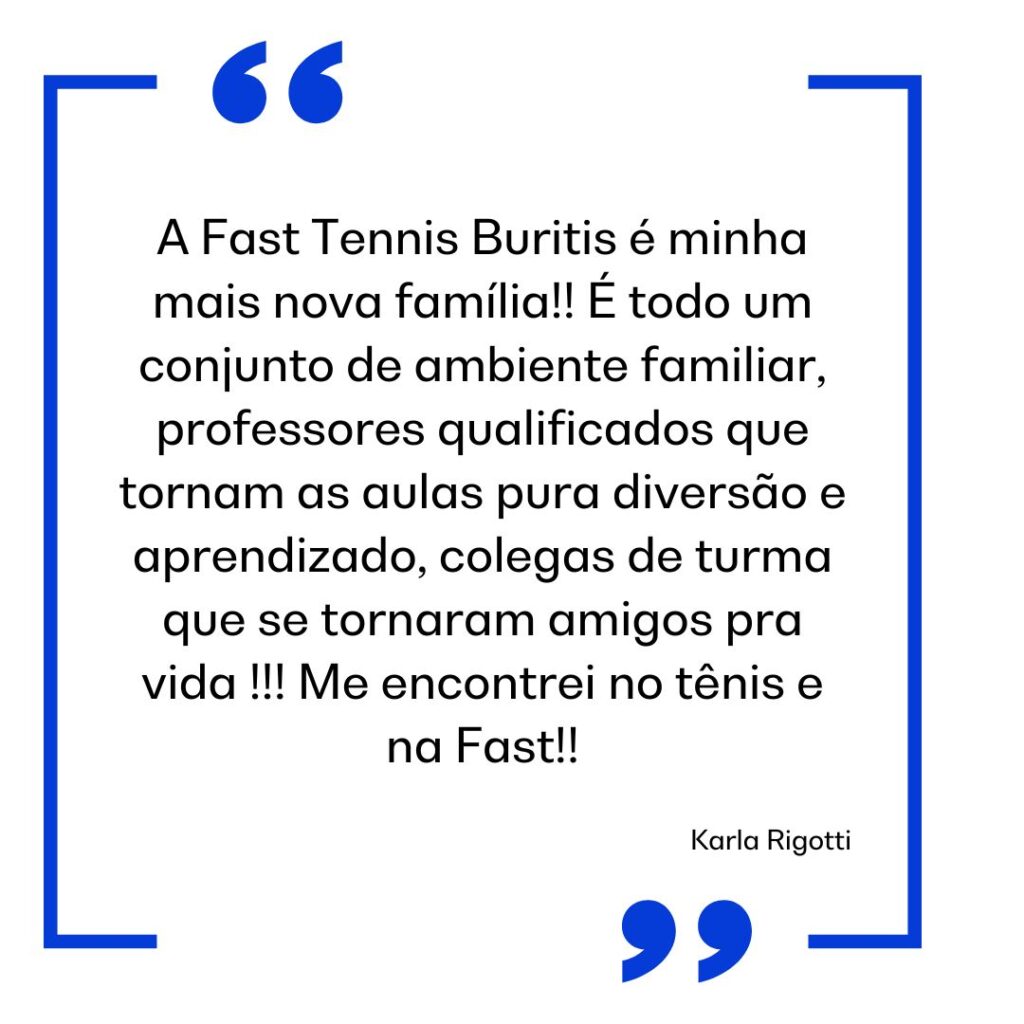 Na Fast Tennis Buritis II, o tênis é para adultos e crianças a partir de 9 anos. São duas quadras de saibro — uma para adultos e outra para crianças — em um ambiente leve, familiar e acolhedor. Aqui, cada cliente joga no seu ritmo, com acompanhamento próximo e metodologia exclusiva.