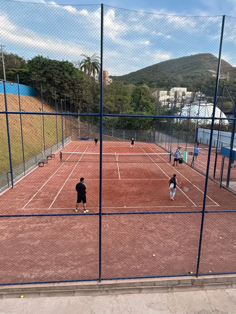 – Adultos relaxam e evoluem no esporte. Crianças aprendem e se desenvolvem com diversão e confiança. – 1 quadra de saibro adulto + 1 quadra de saibro teen – Aulas para adultos e crianças a partir de 6 anos – Professores qualificados e atenção individualizada – Estrutura simples e prática: sem precisar comprar equipamento